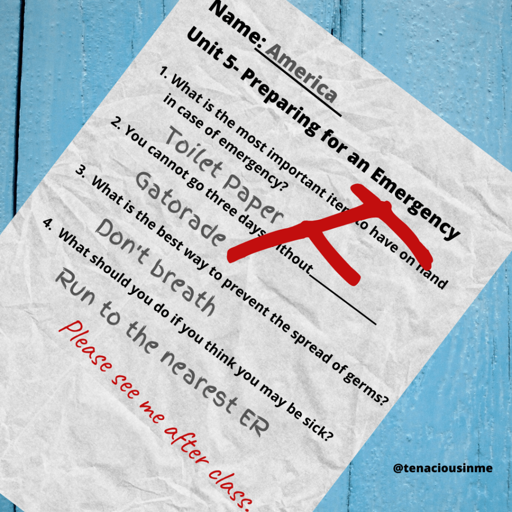 3) Medications- The medications you need vary based on your health. It is always a good idea to have a few weeks’ worth of any essential medication on hand, especially during times of the year when emergencies are likely to strike. That blizzard or tornado might interfere with your ability to replenish them. You will also, in this case, want to have whatever you use to treat a cough on hand, as that is the primary symptom of COVID 19. You won’t need decongestants and antihistamines, both of which are mysteriously selling out nearly as fast as toilet paper. You will want an expectorant. This is also a good time to check your stock of first aid supplies, as accidents still happen, even when we are quarantined at home.
