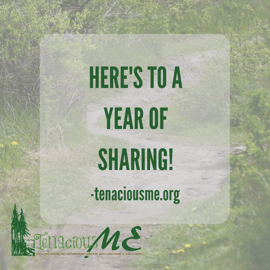 It has been a year of learning to be brave. A year of stepping out of my comfort zone and remembering how to take chances. A year of healing and growth. I’ve been happy, sometimes hesitant, and always grateful for the chance to share it with you. A shared burden is, after all, much easier to bear. Although no one can literally carry the burden of chronic disease for you, knowing there are people who understand, does make the load feel lighter. Hopefully I am helping you lighten your load as much as you are helping me with mine.