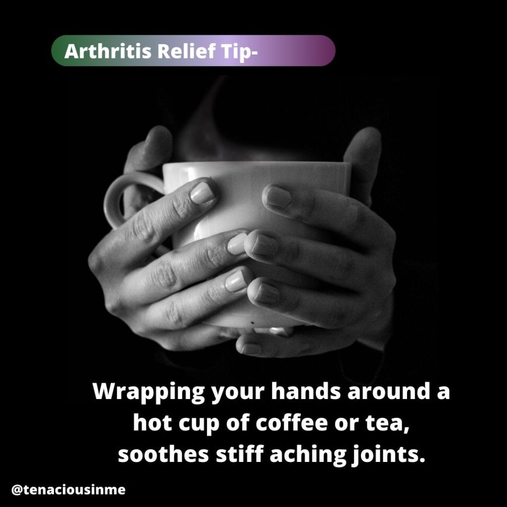 1. A hot beverage- A great way to start soothing that morning pain and stiffness is by wrapping your hands around your favorite hot beverage. Coffee, tea, hot cocoa, it doesn’t really matter what you choose to put in the cup as long as it’s warm and toasty. Wrap your hands around that mug and let the heat seep in and soothe your aching joints. For double joint soothing action, fill that mug with green tea, a proven anti-inflammatory.