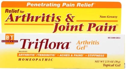 6. Triflora arthritis gel- This topical remedy uses plant power to relieve arthritis symptoms. It reduces swelling from inflammation and eliminates stiffness. With poison ivy as one of the primary ingredients, it is recommended that it be tested on a small patch of skin before applying to a large area. Some people are very sensitive to poison ivy and will not be able to use this one. (I was pleasantly surprised to find my generally sensitive skin had no reaction.)